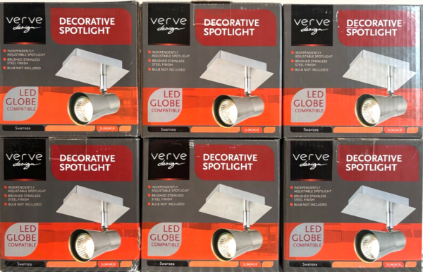 6 x Verve Design – Swansea Brushed Stainless Steel Adjustable Single LED Spotlights